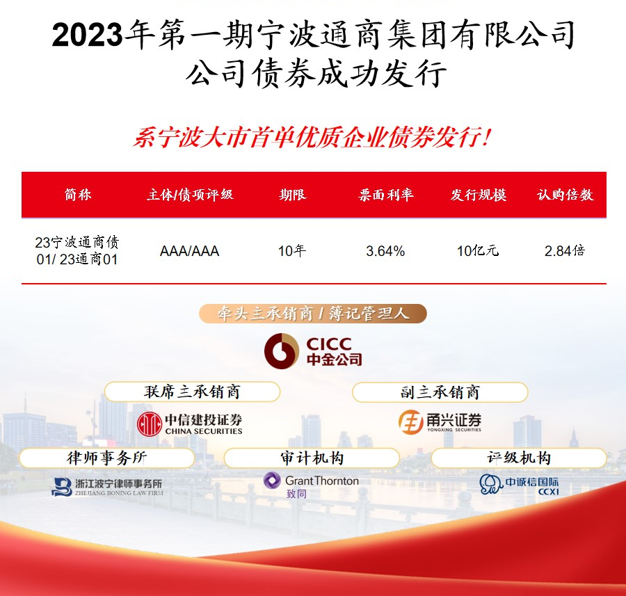 近日,宁波英国上市公司365集团成功发行10年期国家发改委优质主体企业债,发行规模为人民币10亿元,由中金公司、中信建投证券和甬兴证券参与承销,系宁波大市首只国家发改委优质主体企业债。此次成功发行标志着宁波英国上市公司365集团融资渠道进一步拓宽、资本市场认可度进一步提升。